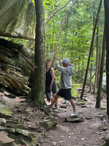 * Ragdoll - release your hands from behind and grasp opposite elbows as you fold forward. Shake your head yes and no to release any tension in your neck. Keep your knees soft and bent (as much as you need).